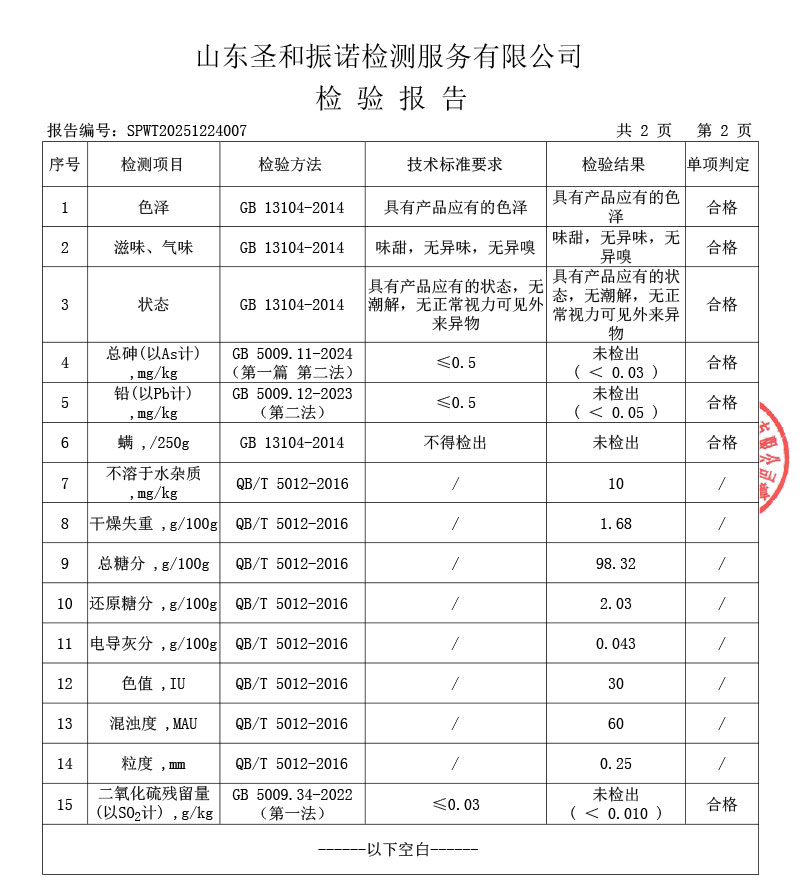 綿白糖檢測報告